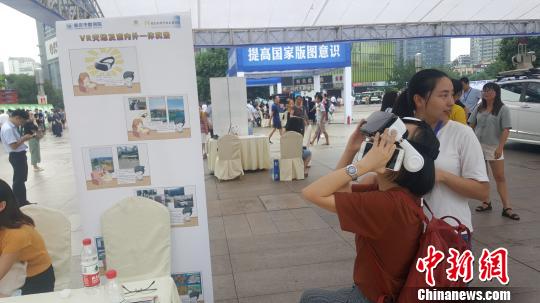中新网重庆8月29日电 (陈植炜 钟旖)29日,重庆市规划局集中展出重庆特色地图,吸引大批重庆市民前来观展。市民借用VR、三维数字城市等高科技“亲临”重庆各个城市角落。
