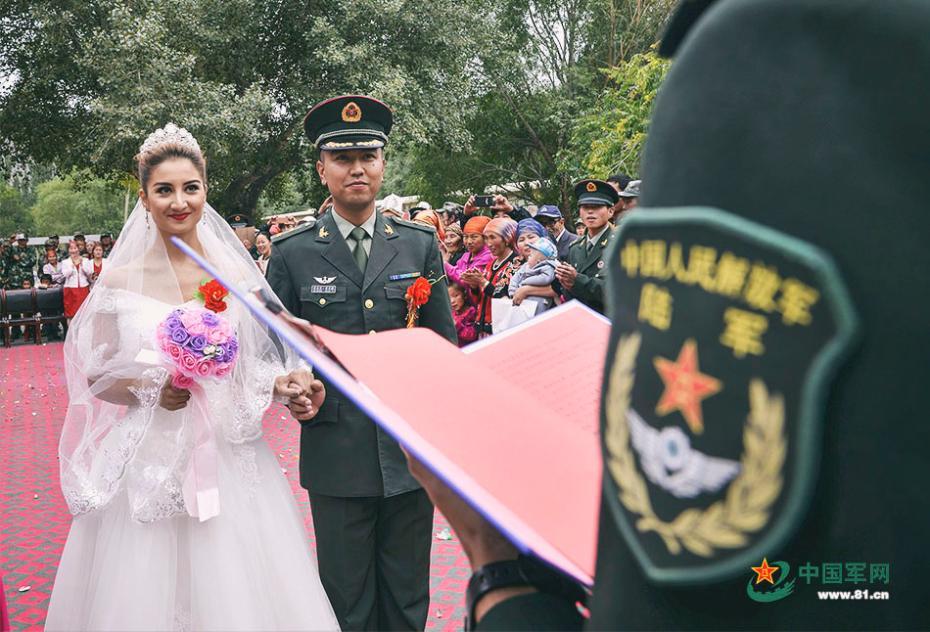 麦尔旦军校毕业时,原本可以选择留在家门口乌鲁木齐,但他却自愿申请来到了艰苦的南疆。随后,为了不耽误女友的青春时光,他便写了一封分手信。让麦尔旦感动的是,阿依夏不但不离不弃,还在背后一直默默地支持他。图为见证爱的誓言。杜麒麟 刘慎 摄影报道 图片来源:中国军网