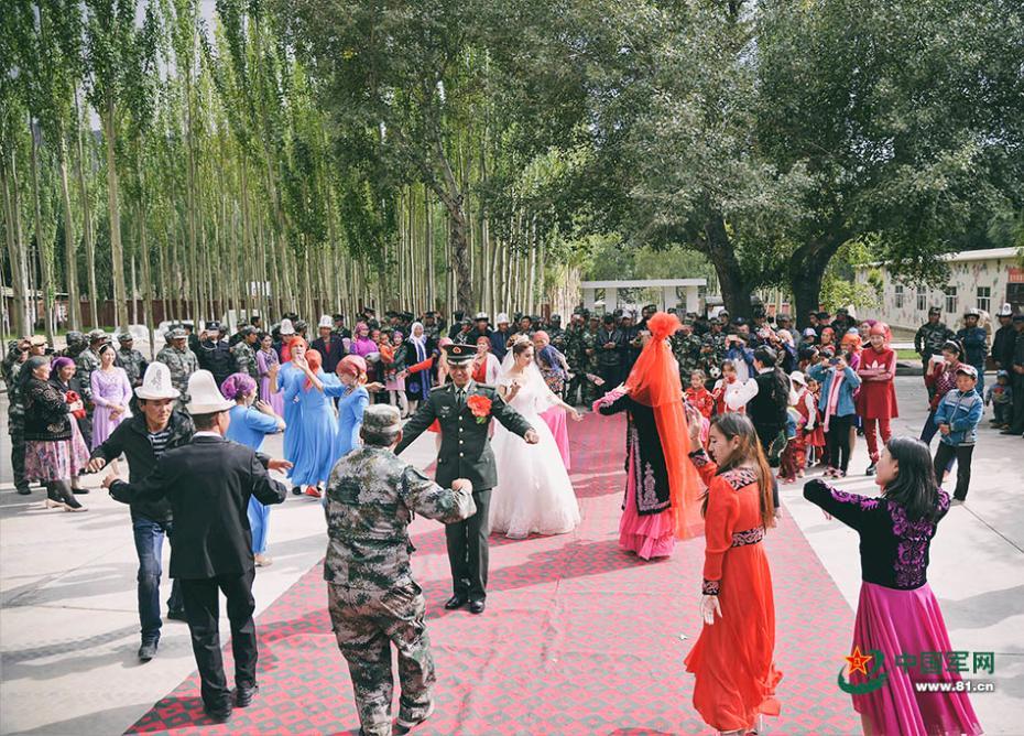 轻盈的舞步跳起来,美妙的库木孜弹起来,欢快的歌曲唱起来。8月25日,位于祖国最西端的新疆克孜勒苏军分区迈丹边防连热闹非凡,维吾尔族排长麦尔旦和未婚妻阿依夏在全连官兵和驻地牧民群众的共同见证下走进了婚姻的殿堂。图为同走戍边路,体会边防军人的艰辛与不易。杜麒麟 刘慎 摄影报道 图片来源:中国军网