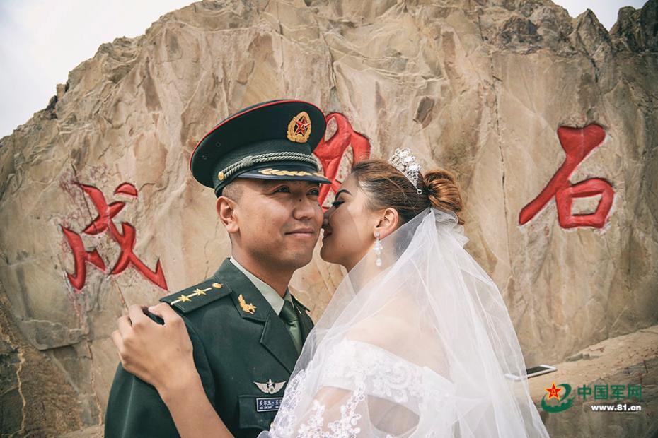 戍边石前许下爱情诺言。杜麒麟 刘慎 摄影报道 图片来源:中国军网