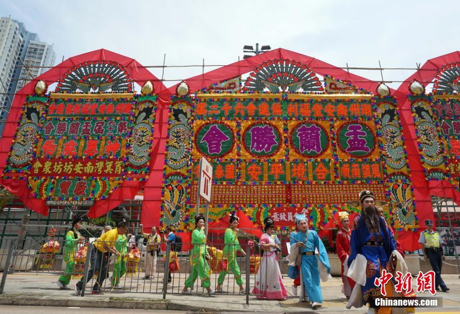 筲箕湾潮籍乡亲一直致力推动地区文化艺术,几十年来在区内举办传统的盂兰胜会,除了弘扬孝道之外,均会筹演潮州戏曲及特色巡游活动,使传统的文化艺术得以流传。主办方表示,今年“潮州戏曲暨巡游文化汇演”活动,特别邀请了潮州剧团来港表演传统潮州戏曲,包括潮州布马舞、潮州大锣鼓队巡游。 中新社记者 洪少葵 摄