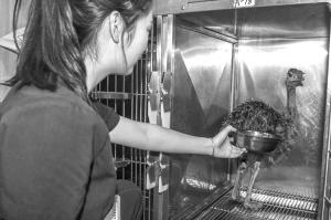 小鸵鸟受伤遭主人遗弃 至今尚未脱离危险