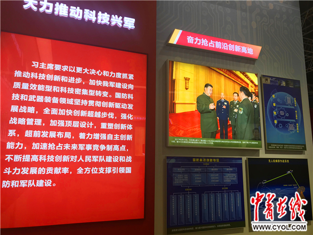 大力推进科技兴军,努力提升科技对战斗力增长的贡献率,产生了一大批标志性成果,锻造了一大批科技创新领军人物和团队。排在首位的便是展览内展出的“八一勋章”获得者马伟明带领的电力集成创新团队。面对舰船综合电力系统、电磁发射技术等世界公认的技术难题,他们坚持“要做就做最前沿的”,敢为人先、奋力攻关,取得一项又一项原创性重大创新成果,在与西方国家科研创新的赛道上“弯道超车”,实现了从“跟跑者”“并跑者”到“领跑者”的角色转变。