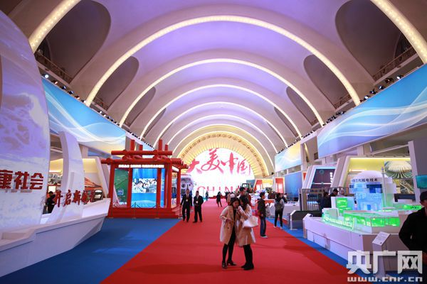50岁的方先生推着坐在轮椅里的母亲,认真听着讲解员的解说,一旁年过80的父亲也拄着拐杖走走停停,仔细认真的看着每一个展品。“他们满意我也就高兴了。”方先生对记者说,父母年纪大了,恰逢十一从老家过来,正好带他们来看看我国这几年的变化和取得的成就。“展览很好。”虽然已经到了中午时分3,站在一旁的父亲笑着对记者说:“我们都带了干粮了,一会儿吃点垫垫肚子继续看。”(摄影 韩靖 郑重)