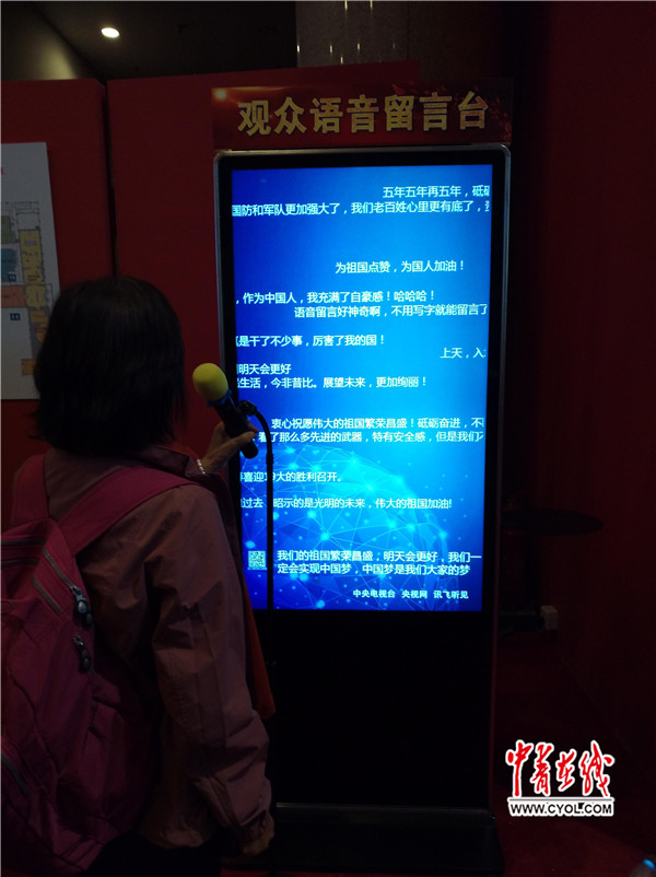 走出第三展区,今年69岁的王女士感叹道:“总书记真伟大!”。语音留言区,不时响起参观者的热情留言“为祖国点赞,为中国加油”“作为中国人,我充满了自豪感”“我们一定会实现中国梦,中国梦是我们大家的梦”。