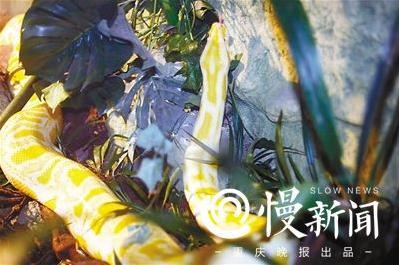 黄金蟒被称作“温和的巨人”,近年来不少市民将它当成宠物来养。不过重庆晚报记者刚看到这个庞然大物时,不由得退了几步,全身汗毛直竖。