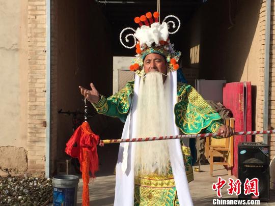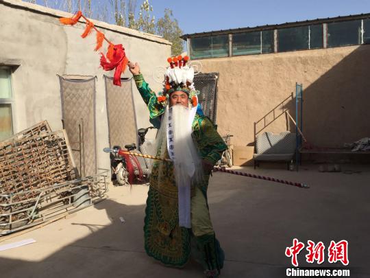 牛宗礼是甘肃敦煌市转渠口乡定西村一个地地道道的农民,在干完农活之余,一有空闲时间,他就开始练习戏曲。牛宗礼近日在接受中新网记者采访时回忆,8岁那年,村里来了社火队,精彩的表演吸引着自己一度活跃在社火场子上舞狮子,14岁接触到了秦腔,因为爱这一行,一唱就是30年。