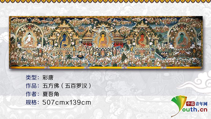 “我主要从事热贡艺术中唐卡和雕塑的传承。”历时七年完成的长5.07米、宽1.39米的唐卡作品《五方佛》是夏吾角的代表作之一。