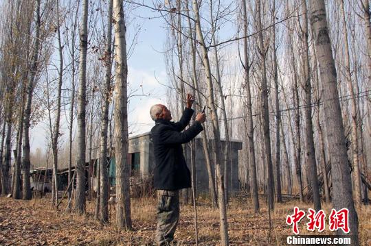 中新网乌鲁木齐11月3日电(王小军 谢南南 朱宇)今年70岁的陶应福老人是新疆尼勒克县的普通农民,14年来,这位年近花甲的老人用自己的双手和汗水,把自己承包的55亩戈壁滩变成了林带,实现了自己“荒滩戈壁变绿洲”的梦想。