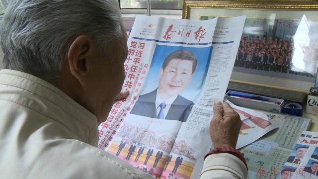 上午,记者来到顾光明老人家中时,他正在整理这段时间有关“十九大”会议的报道。老人家告诉记者,为了能够更好地学习十九大精神,他对这些报纸进行了整理。