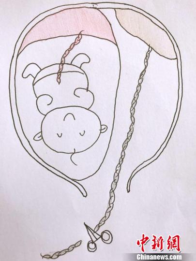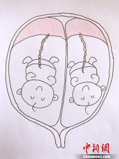 漫画图示:哥哥娩出,妹妹仍在子宫里。芮妈妈 摄