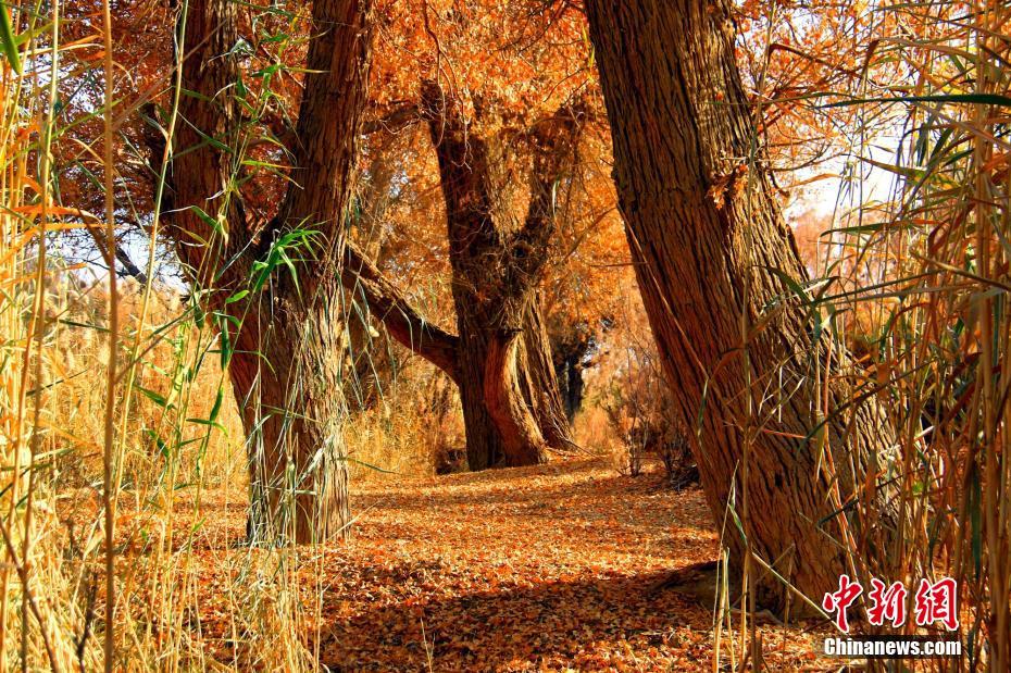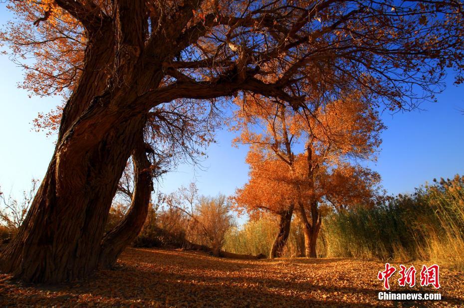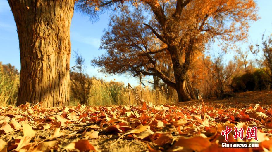秋季的胡杨树落满一地的树叶。 李靖海 摄
