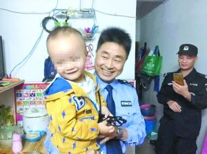 从惊吓中缓过神来的小宇不好意思地笑了,抱着他的民警也开心地笑了。
