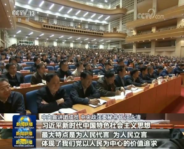 在山东,中央宣讲团成员、中央政法委秘书长汪永清,今天向当地干部群众作了十九大精神宣讲。