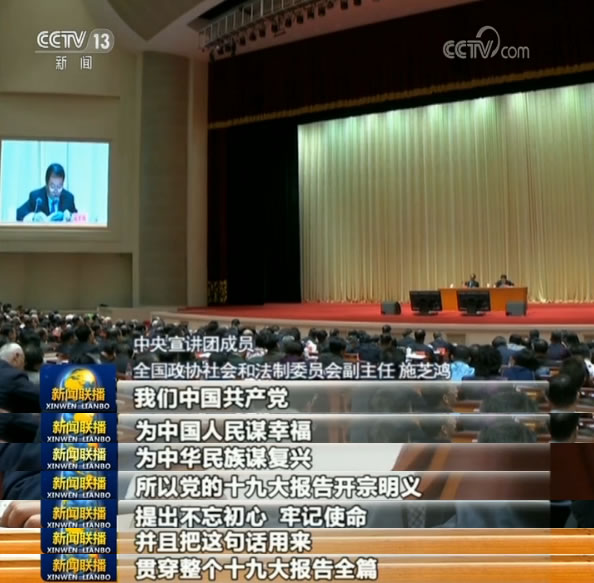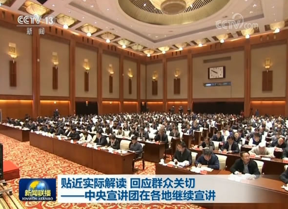 央视网消息(新闻联播):有高度也有温度,有理论也有实践。这两天,学习贯彻党的十九大精神中央宣讲团来到内蒙古、山东、湖南、贵州、新疆等地,继续向广大干部群众作宣讲。