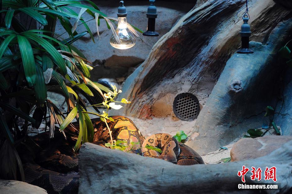 蛇最怕冷,网纹莽也住进了有保暖灯的馆舍。蒋雪林 摄