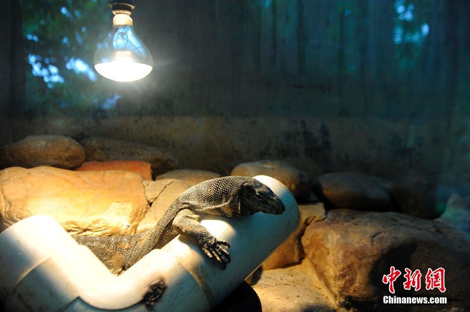 在保暖灯的照耀下,孟加拉巨蜥安静地躺着。蒋雪林 摄