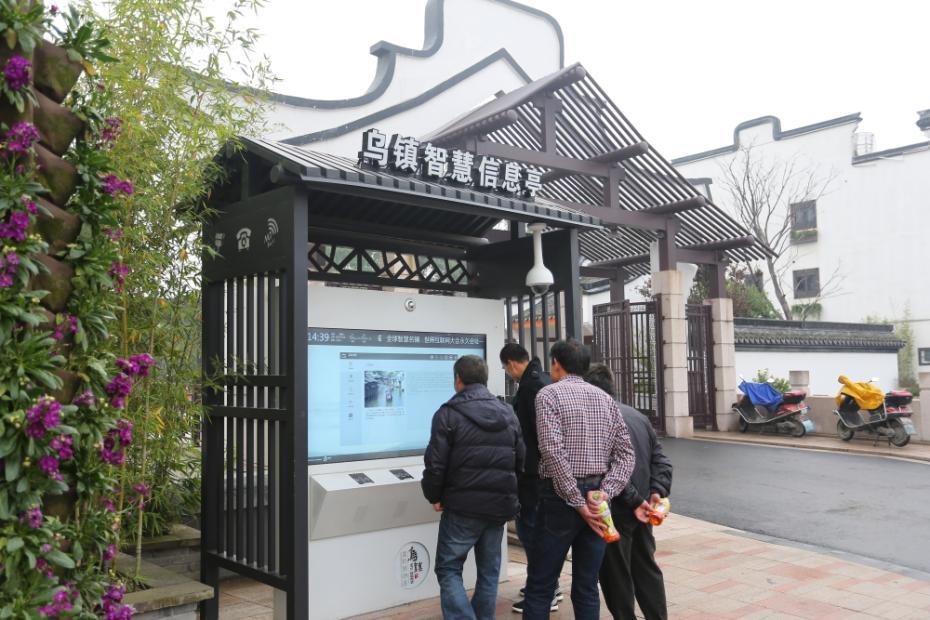 千年水乡所蕴含的历史底蕴,如今正通过智慧信息亭向游客展示。在这里,游客可以了解乌镇的历史,也可以获得路线和天气等生活信息。甚至,在这里还可以为手机等移动设备充电。 张清直 摄 图片来源:浙江在线
