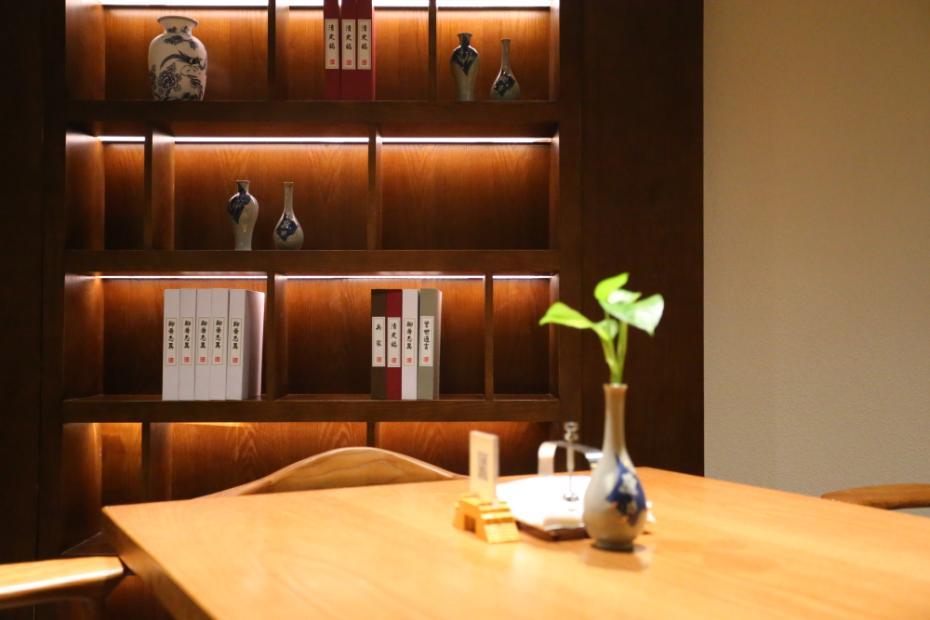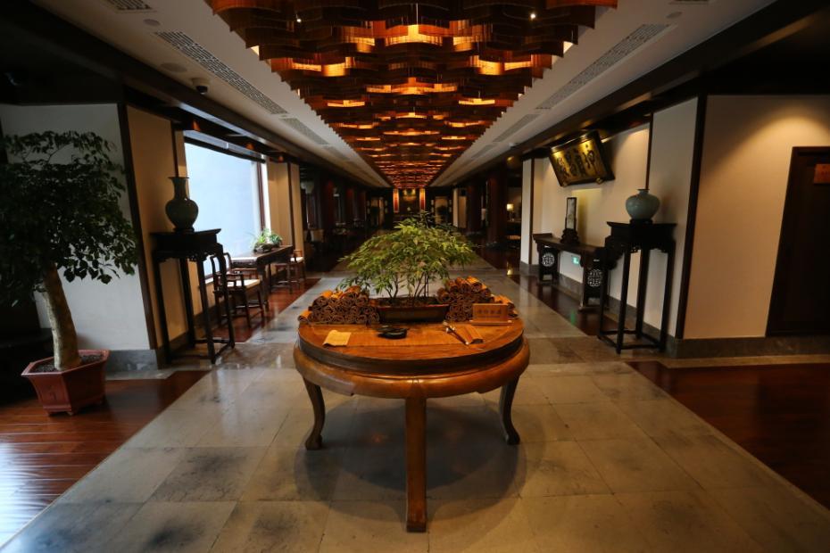 明徽菜馆于今年九月正式营业,内部装饰温暖、典雅,成列的众多经史类书籍更为餐馆增添了不少书卷气。不知今年的互联网大会期间,会有哪些大咖光临此地? 张清直 摄 图片来源:浙江在线