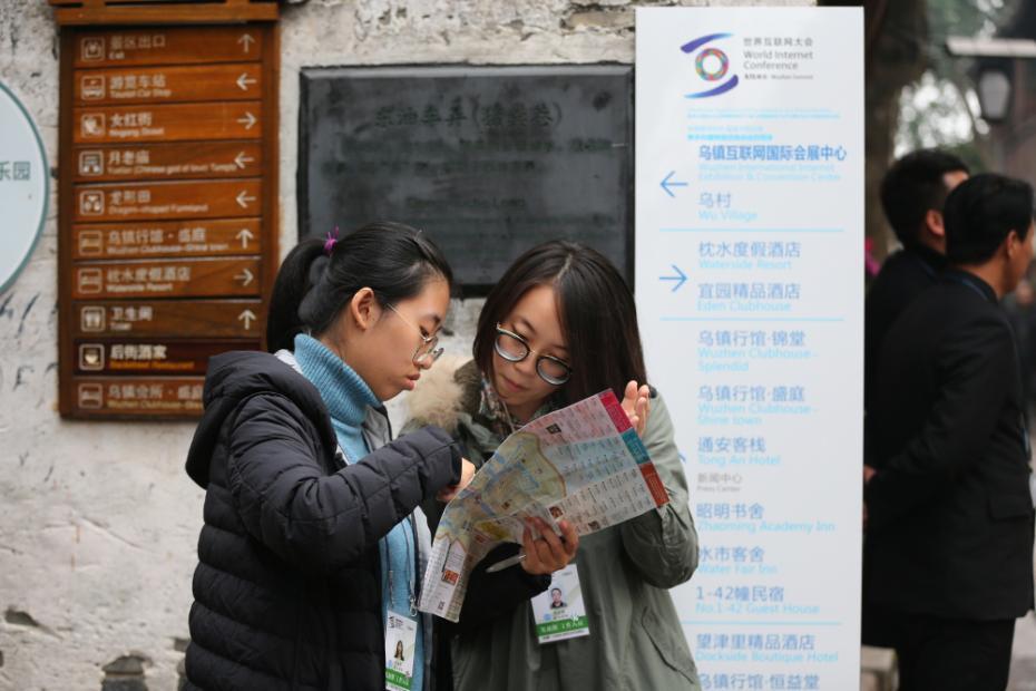 大会开幕前夕,志愿者抓紧时间在景区内熟悉路线,期望在大会期间为与会嘉宾和媒体记者提供更细致、周到的服务。 张清直 摄 图片来源:浙江在线