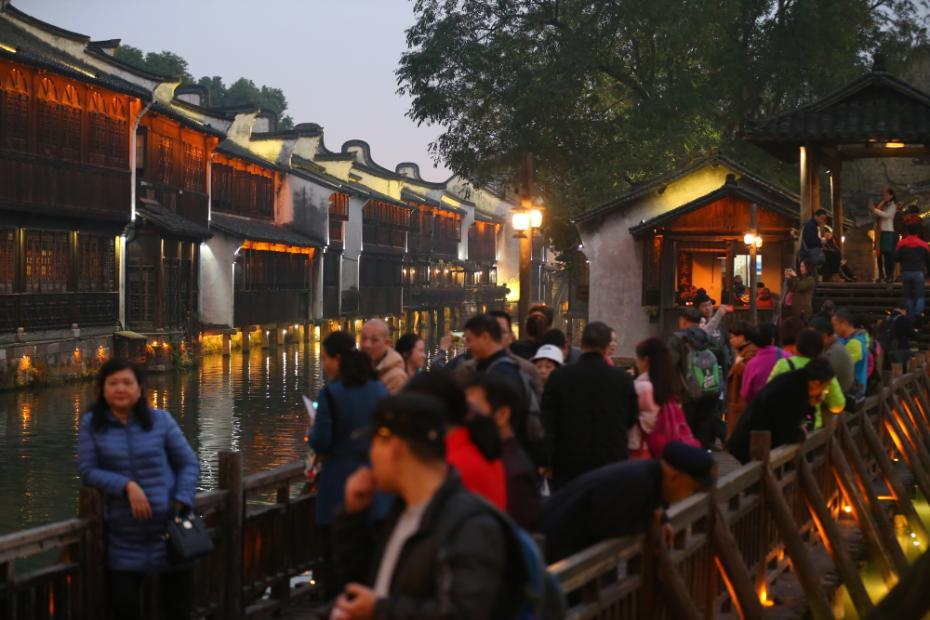 夜幕降临,西栅景区内仍然是“人从众”的状态。智慧互联已经融入了乌镇生活的每个角落。迎接第四届世界互联网大会,乌镇准备好了! 张清直 摄 图片来源:浙江在线