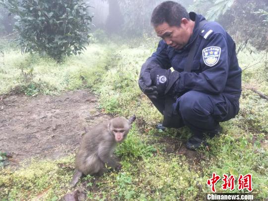 图为民警将猕猴放归自然。钟欣 摄