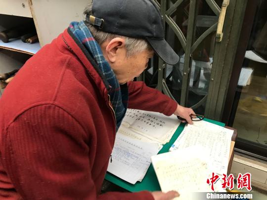 图为曹立熹正在整理球拍修理登记表。岳依桐 摄
