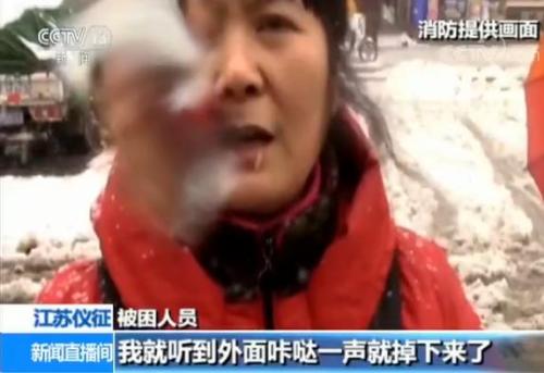 江苏仪征暴雪压垮门面广告牌 消防救出13人