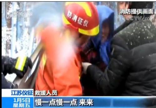 救援人员:人先出来,人先出来,小孩先出来。