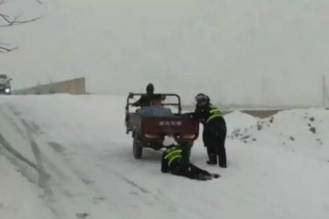 为了给老乡搭把手 交警使出各种姿势
