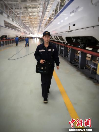 检修班组的周晓娇正“暴走”,赶往车辆另一端的司机室进行CIR设备检测 樊佳 摄