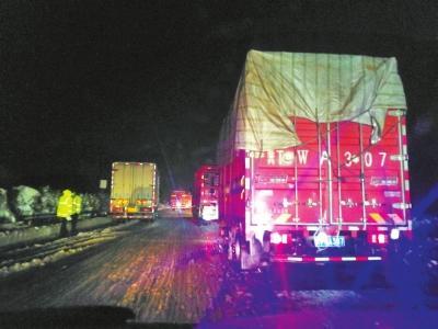 截至昨天晚上7点,因高速公路结冰,部分路段仍有车辆停滞不前的情况。昨天下午3点,信阳高速交警支队发布消息,全省高速公路管制7座以上车辆,信阳境内的京港澳灵山收费站、信阳收费站、胡店收费站管制上道车辆,大广、沪陕、息淮固恢复通行。而截至昨晚8点10分,信阳境内高速已全线关闭。