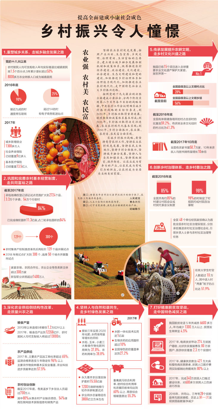 按照党的十九大提出的决胜全面建成小康社会、分两个阶段实现第二个百年奋斗目标的战略安排,中央农村工作会议明确实施乡村振兴战略的目标任务是,到2020年,乡村振兴取得重要进展,制度框架和政策体系基本形成;到2035年,乡村振兴取得决定性进展,农业农村现代化基本实现;到2050年,乡村全面振兴,农业强、农村美、农民富全面实现。