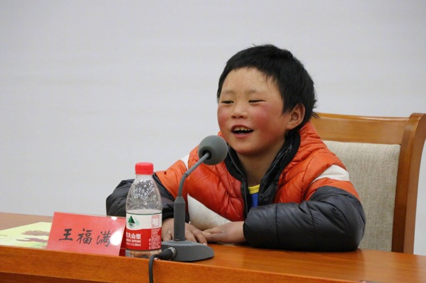 王福满表示,自己喜欢“冰花男孩”这个名字,“这是大家给我的称号,但我的名字是王福满。我想对支持我的阿姨叔叔说声感谢,等我长大了会回报大家。”