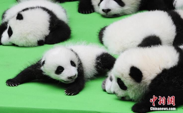 资料图:成都大熊猫繁育研究基地的大熊猫宝宝们在熊猫乐园卖萌,憨态可掬,迷倒众粉丝。安源摄