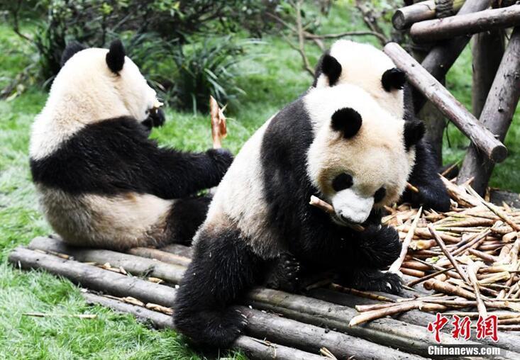 大熊猫“成就”“双好”。 中新社记者 王刚 摄