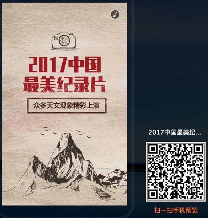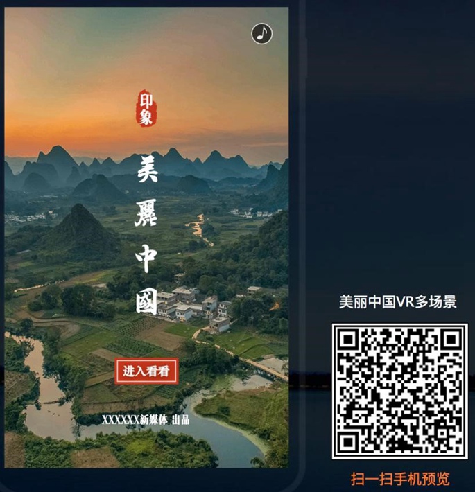 这支H5以VR全景图的形式呈现了祖国的大好河山,用户可通过滑动手指,身临其境的欣赏祖国的美景。