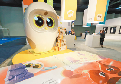 在2018年拉斯维加斯消费电子展上,中国物灵科技公司展示可为儿童朗读绘本的机器人Luka。新华社记者 李 颖摄