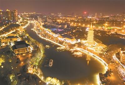 江苏淮安里运河文化长廊夜景迷人。交汇点记者 邵丹 摄