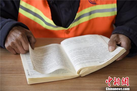 喜欢看书的朱德正,每天道路清扫结束后,他就会将衣服整理干净,把手清洗干净,再来到书柜子前面挑出爱看的书,静静坐下阅读,有时是几十分钟,有时是个把小时。