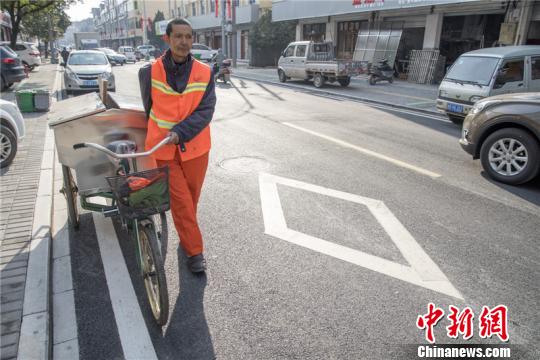 这位大爷叫朱德正,今年73岁了,是金东孝顺镇低田人。“妻子在澧浦集镇上做环卫工人,我呢,每天给她搭把手。”朱德正说,集镇上道路清洁分上午和下午各一次,他就主动承担起了妻子半天的清扫任务。