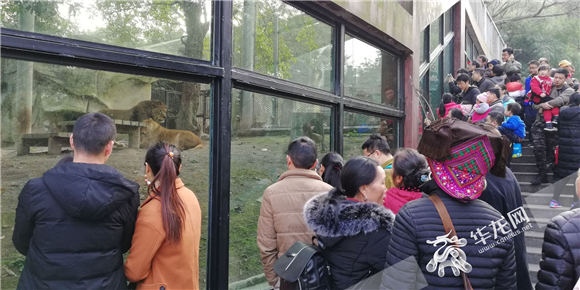 正月初五,重庆动物园游客如织,亲子家庭成为“旅游大军”的主力。看熊猫、观老虎、听狮吼,游客看动物,动物也看游客。孩子们玩得开心,大人们耍得高兴。