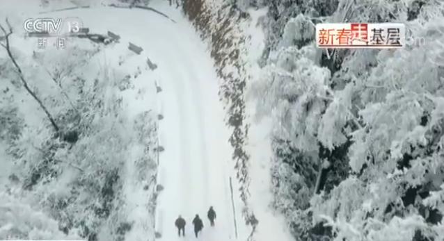 从楠木坝组到黄莲乡政府所在地有5公里,路面已经出现凝冻,两位干部也早早来帮忙,走了3个多小时才到达目的地。