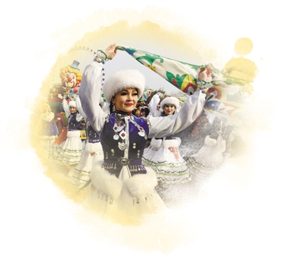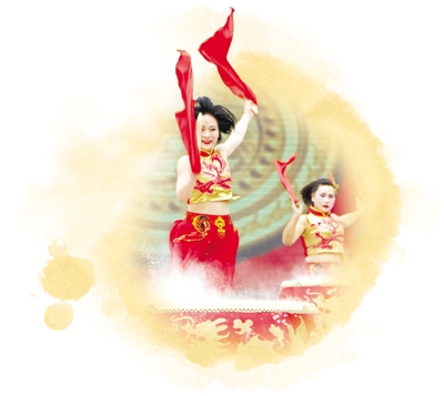 2月18日,北京石景山“洋庙会”上,外国演员在“四海同春、带路寻梦”大型主题新春花车行进中翩翩起舞。李文明摄