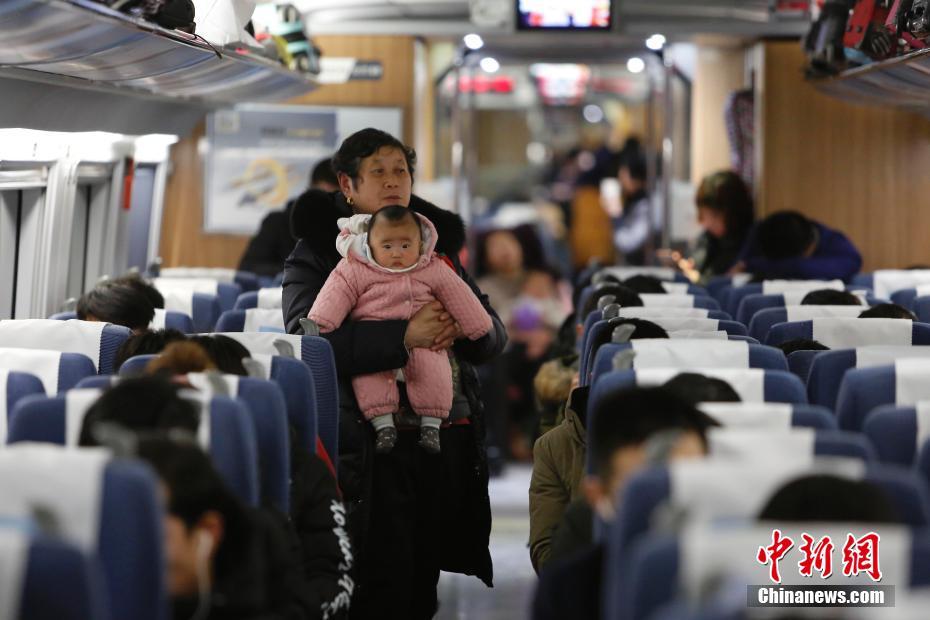 2月21日,中国农历正月初六,铁路春运客流持续保持高位运行,预计发送旅客1180万人次,同比增长7.6%。春节长假期,成都局集团公司累计发送旅客近600万人次。图为春节长假结束,母亲带着孩子乘高铁返回眉山。 中新社记者 刘忠俊 摄