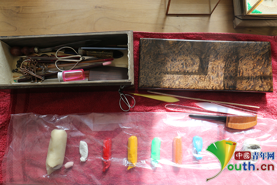 制作面人所需的各种工具。中国青年网记者张群摄
