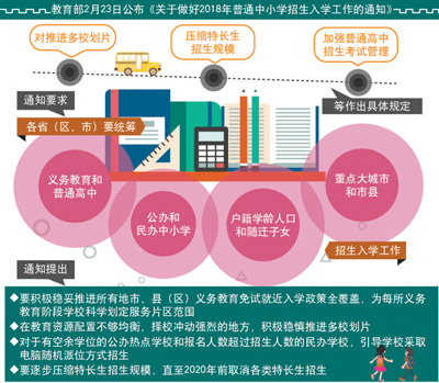 教育部日前印发《关于做好2018年普通中小学招生入学工作的通知》(以下简称《通知》),要求要逐步压缩特长生招生规模,直至2020年前取消各类特长生招生。继续清理和规范中考加分项目,尚未全面取消体育、艺术等加分项目的地方,要从2018年初中起始年级开始执行。