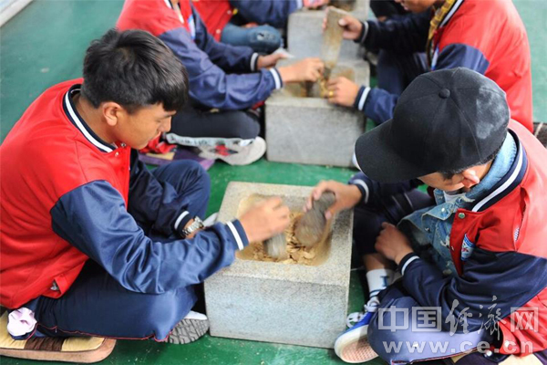 图为拉萨市第二中等职业技术学校藏药制药专业的学生正在学习收工研磨藏药 摄影:经济日报—中国经济网记者 胡达闻