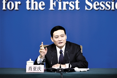 3月10日,十三届全国人大一次会议新闻中心举行记者会,邀请国务院国资委主任肖亚庆、副秘书长兼新闻发言人彭华岗就“国有企业改革发展”相关问题回答中外记者提问。这是肖亚庆回答记者提问。 新华社记者 王鹏 摄