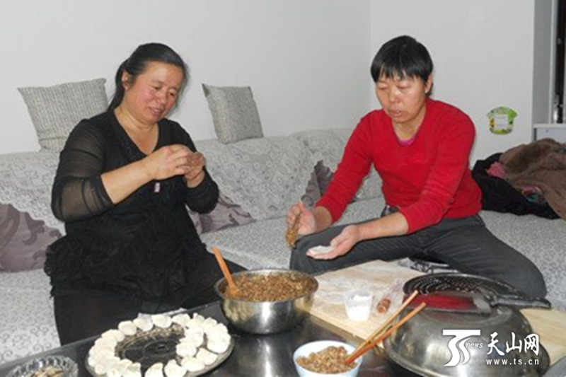 邻居来到黄生琴家,一起包饺子。(由受访者提供)